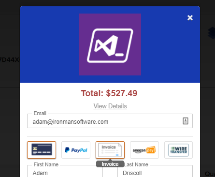 Finally, click the Invoice button in the middle of the check out page that appears. You can enter your PO number and