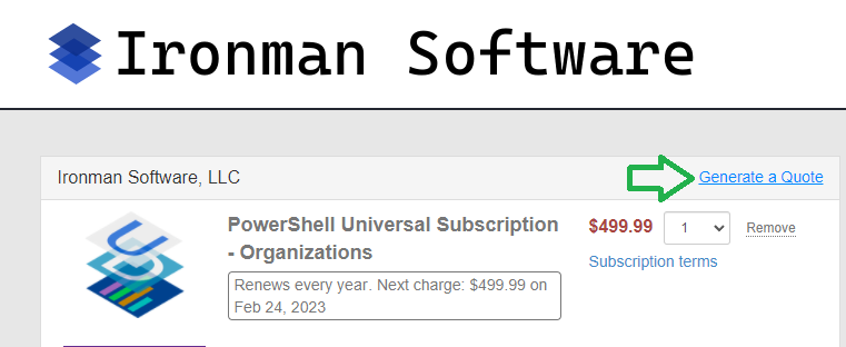 You can use our FastSpring checkout system to generate your own quote. To visit our storefront, click here. Add items to your cart. Once you